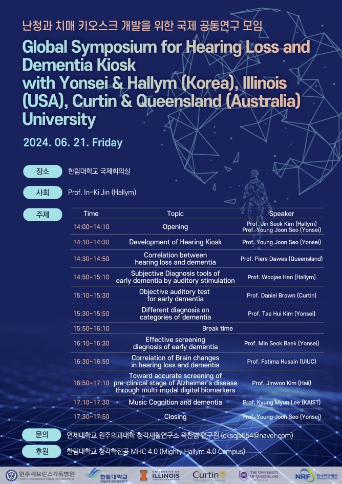 2024년 06월 21일(금) '난청과 치매 키오스크 개발을 위한 국제 공동연구 모임'이 있을 예정입니다.