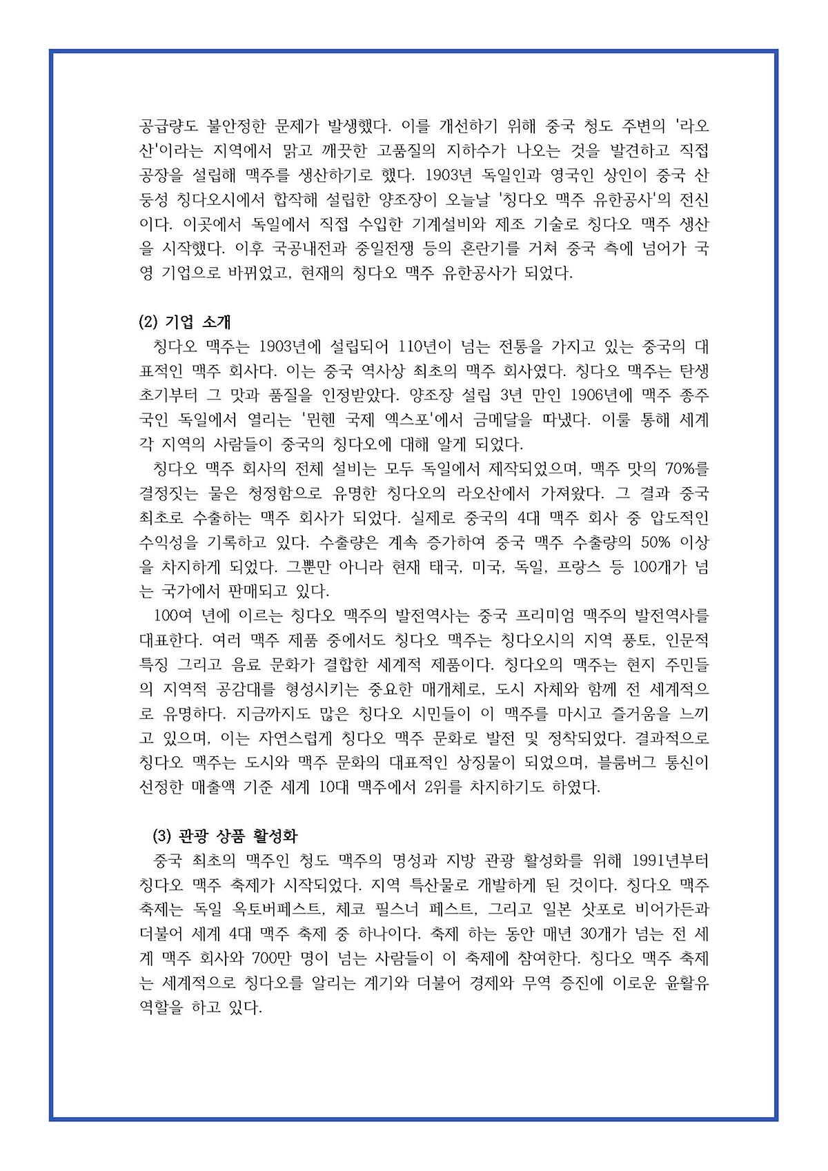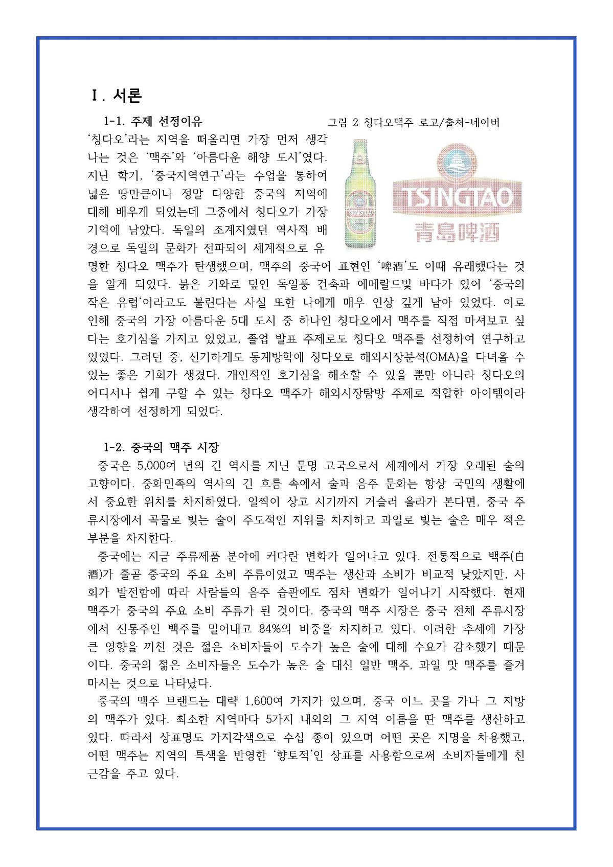 2023 한중비즈니스전공 칭다오 해외시장분석-천서빈