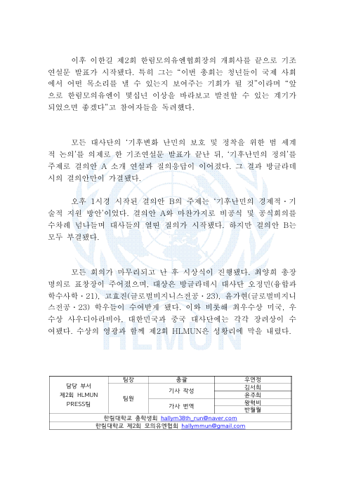 제2회 한림 모의유엔 총회에 대한 기사입니다.