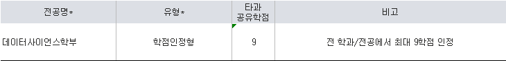 ※ 기본적으로 타전공을 모두 인정해줄 수 있으나 본인의 주전공 혹은 복수전공이 아닌 타 전공을 인정 받고자 한다면 학부 내 교과과정위원회의 심사를 받은 후 승인이 결정.