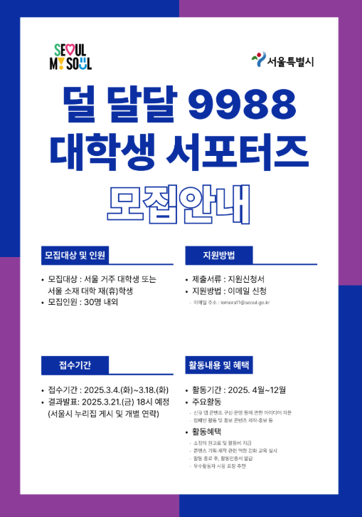 덜 달달 9988 대학생 서포터즈 모집 공고
