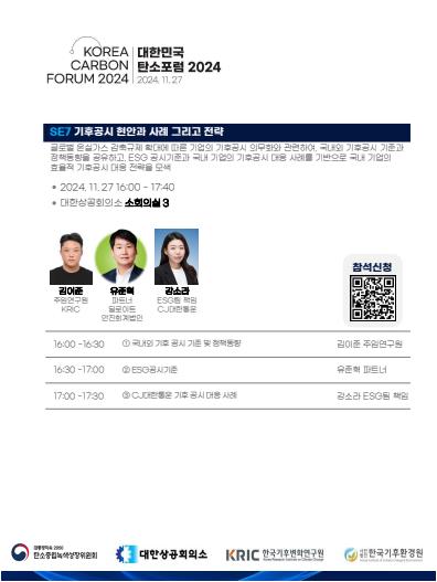 대한민국 탄소포럼 2024 개최 관련 안내 드립니다.