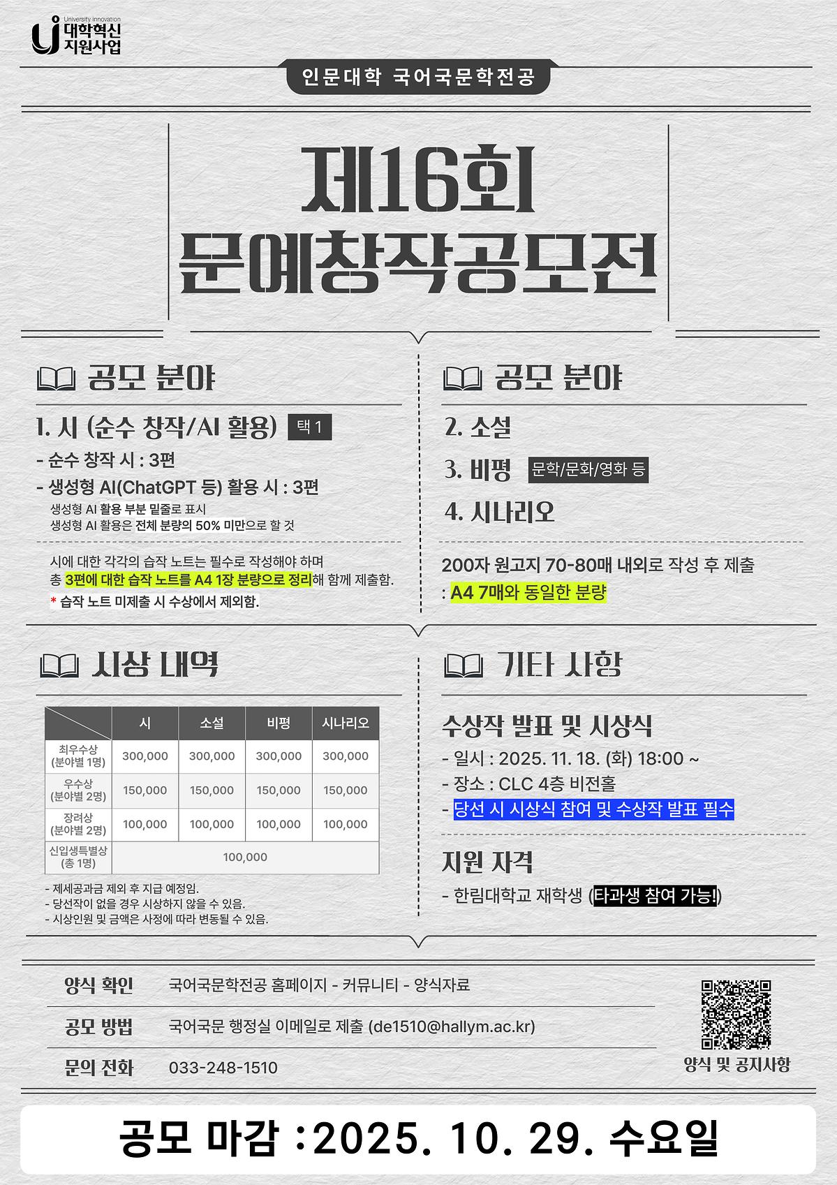 : [2025 문예창작공모전] 학과, 학번, 이름, 공모 분야