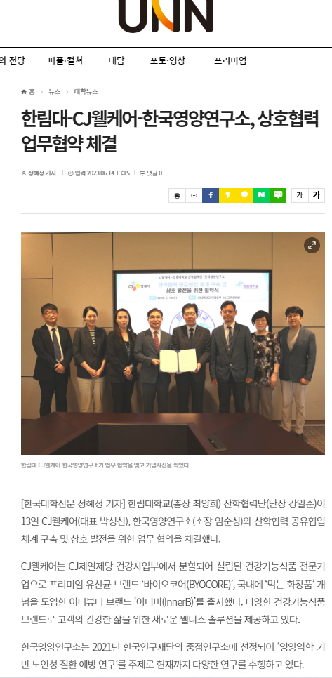 2023.06.13 한림대학교 산학협력단-CJ웰케어-한국영양연구소 상호협력 업무협약 체결